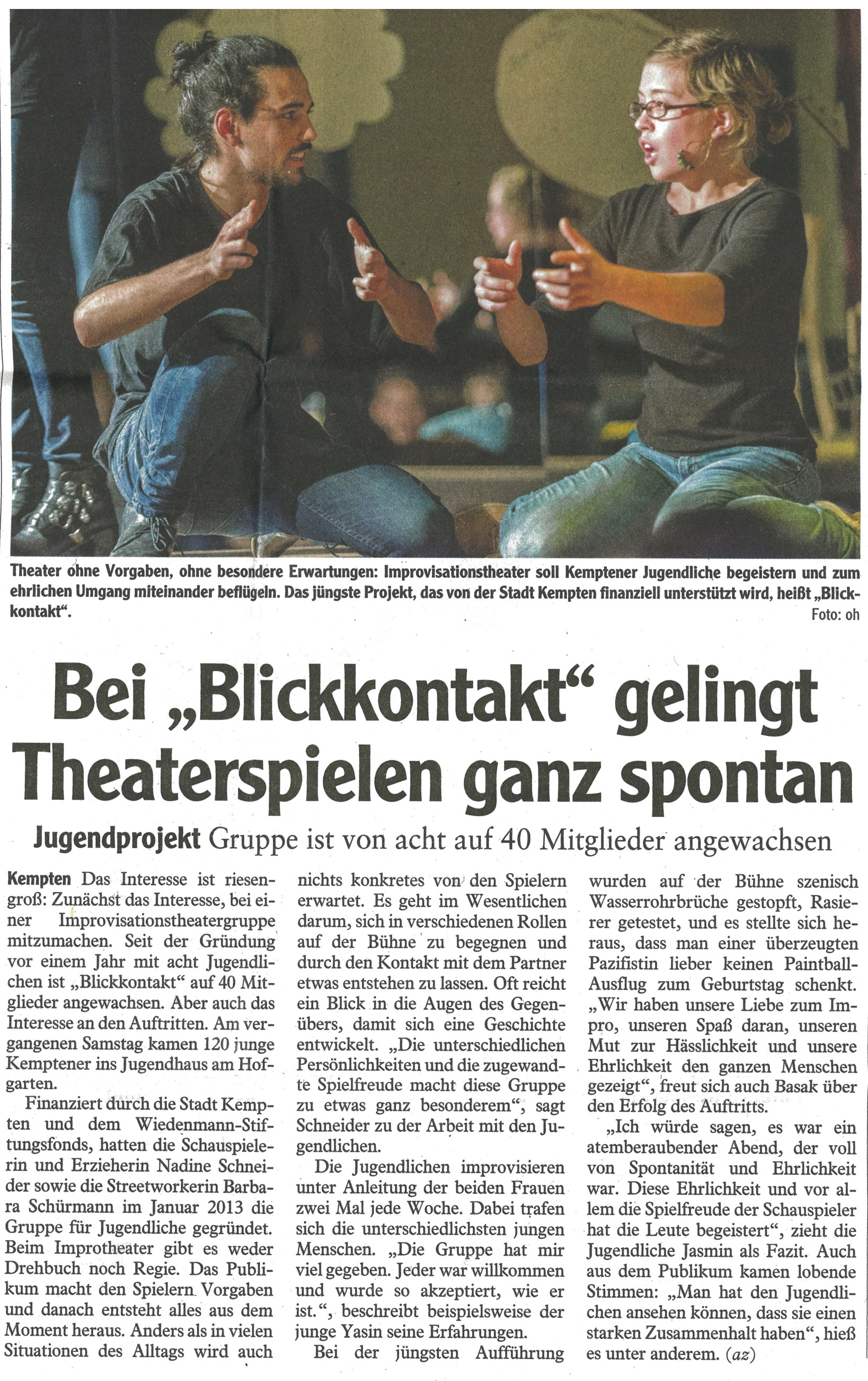 Blickkontakte 2013 Pressebeitrag