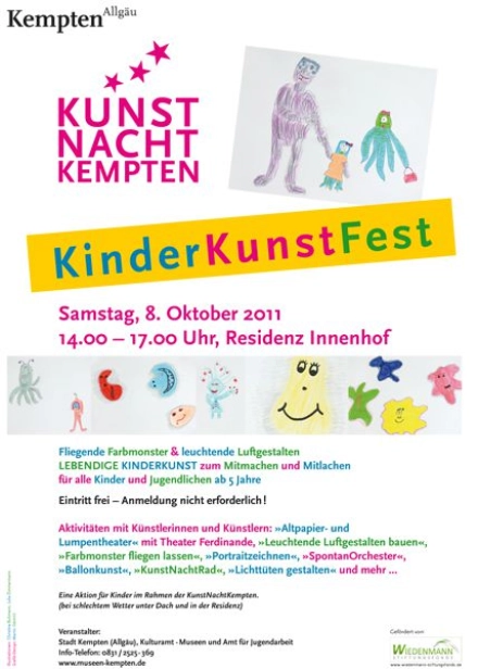 Am 8.Oktober 2011 fand im Rahmen der 1. KemptenerKunstNacht bereits am Nachmittag das von uns geförderte KinderKunstFest statt.