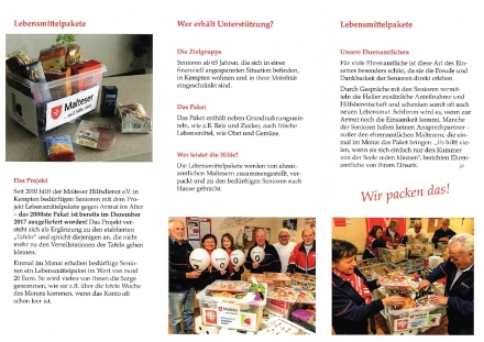 Auch dieses Jahr unterstützen wir den Malteser Hilfsdienst bei der ehrenamtlichen Verteilung von Lebensmittelpaketen an bedürftige Seniorinnen und Senioren in Kempten.