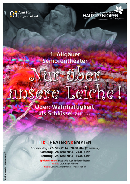 Das so konzipierte 1. Allgäuer Seniorentheater kann als eine Möglichkeit gesehen werden, Lebensthemen in Gemeinschaft für Gemeinschaft zu verdeutlichen und zu bewegen. Das Ziel ist, es eine Inspiration für geistige, körperliche sowie mentale Vitalität anzubieten.Haben wir uns bisher mit der künstlerischen Auseinandersetzung der "Vergangenheit" befasst, geht es nun um die gegenwärtigen Lebenssituationen der Mitwirkenden. Um ihre Fragen, Wünsche und Sehnsüchte.