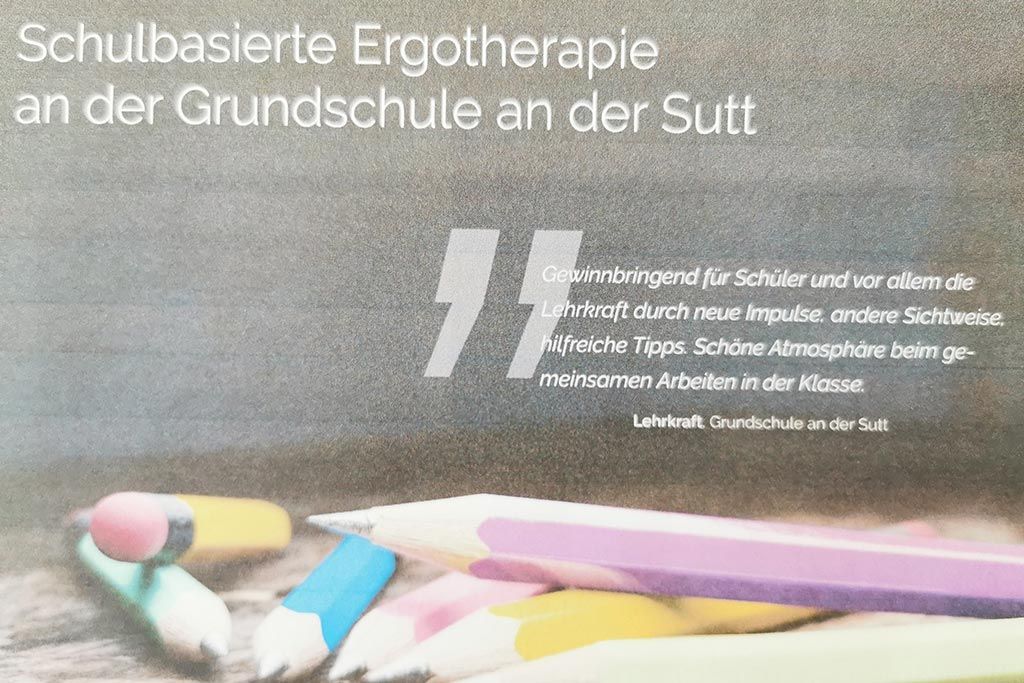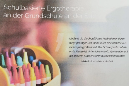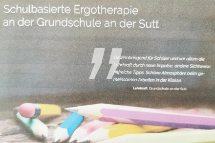 Die Grundschule „An der Sutt“ fungiert innerhalb der einzigen bayerischen Modellregion Inklusion in Kempten als Modellschule und vereint dabei durch interdisziplinäre Zusammenarbeit von Sozial-, Sonder- und Heilpädagogen unterschiedliche Professionen. Seit 2019 wird diese Arbeit nun durch die schulbasierte Ergotherapie durch eine Ergotherapeutin erweitert.